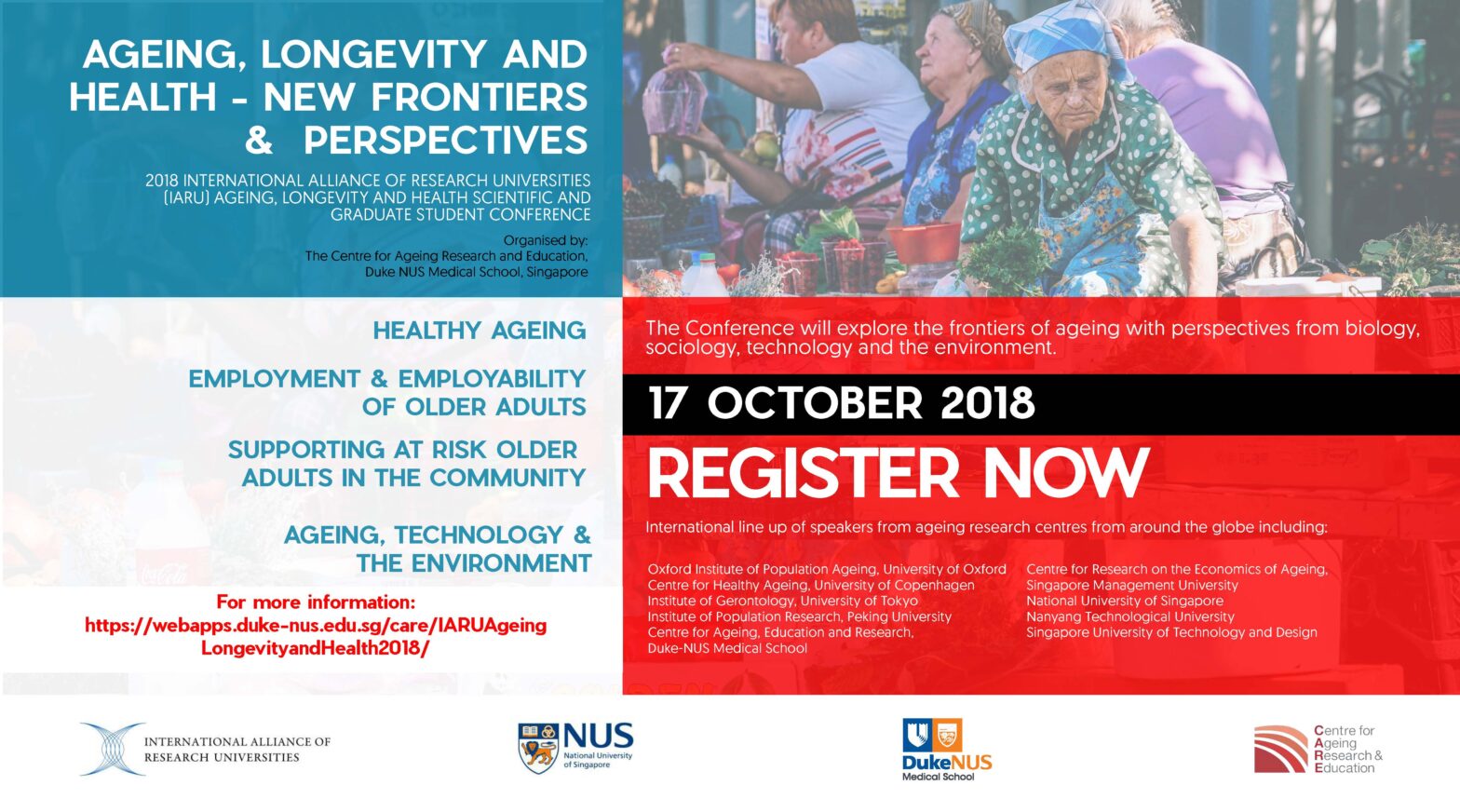 For more information, please visit https://webapps.duke-nus.edu.sg/care/IARUAgeingLongevityandHealth2018/