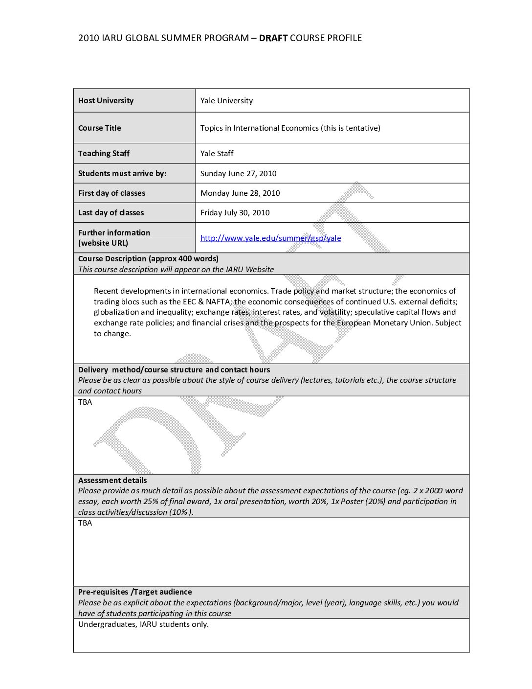 GSP 2009: Report on YAL 2010 Course
