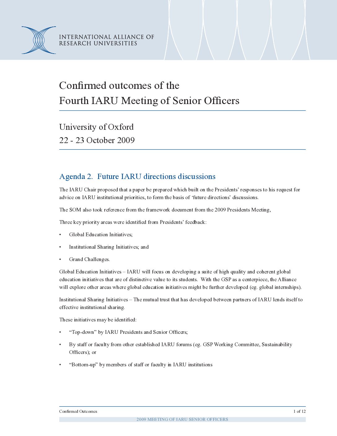 The International Alliance of Research Universities (IARU) advances its mission through a series of strategic initiatives focused on research, education, and institutional collaborators.