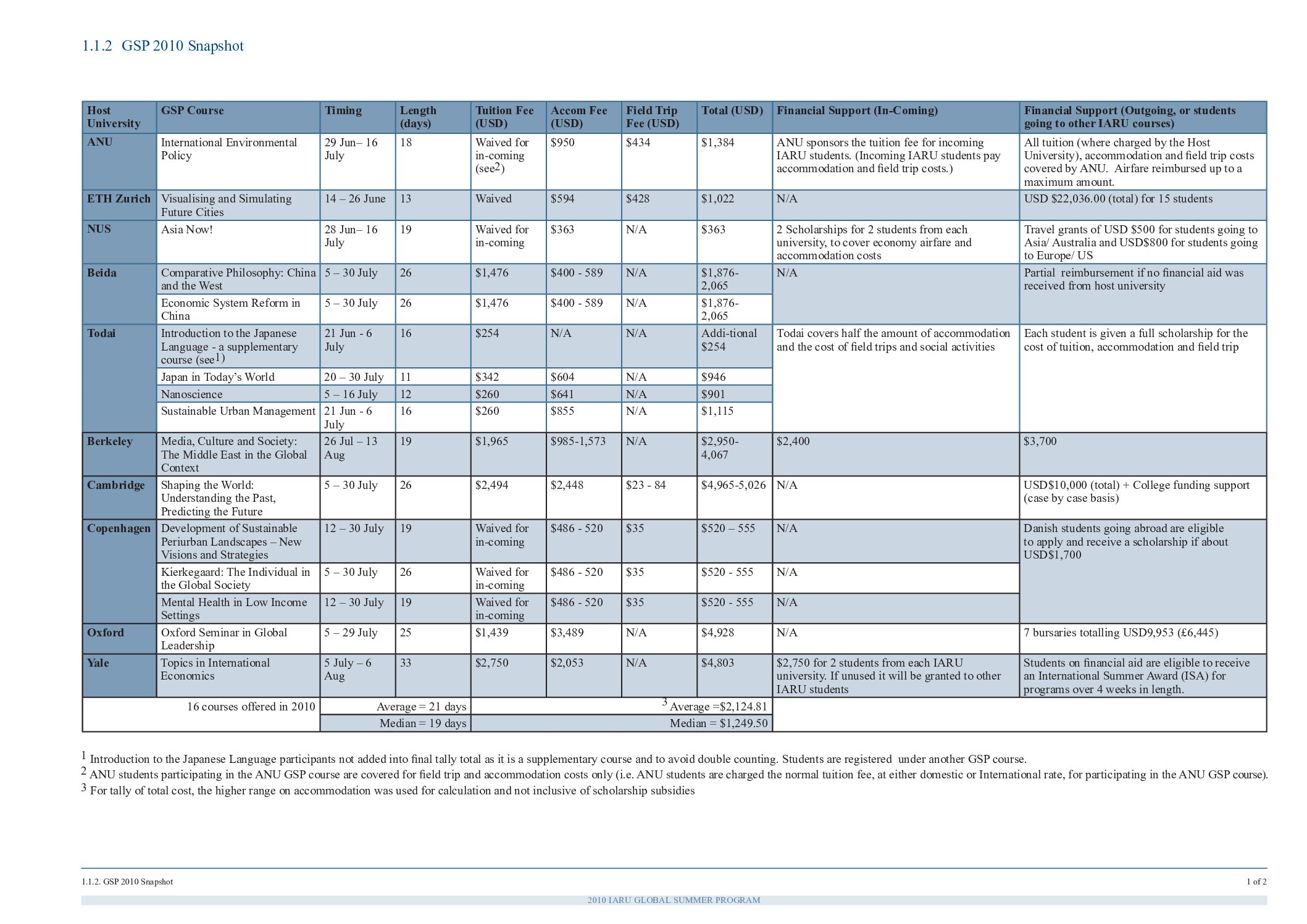 GSP 2010: GSP 2010 Course Snapshot