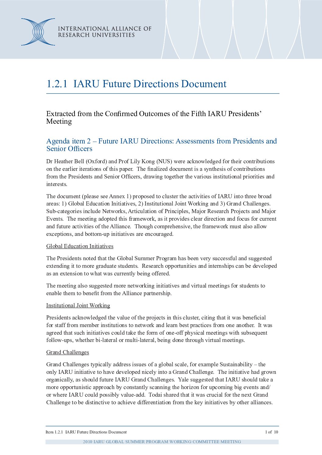 The International Alliance of Research Universities (IARU) advances its mission through a series of strategic initiatives focused on research, education, and institutional collaborators.