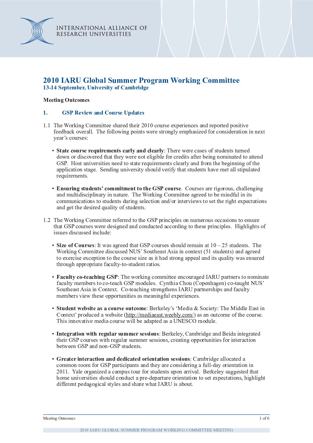 GSP 2010: Outcomes
