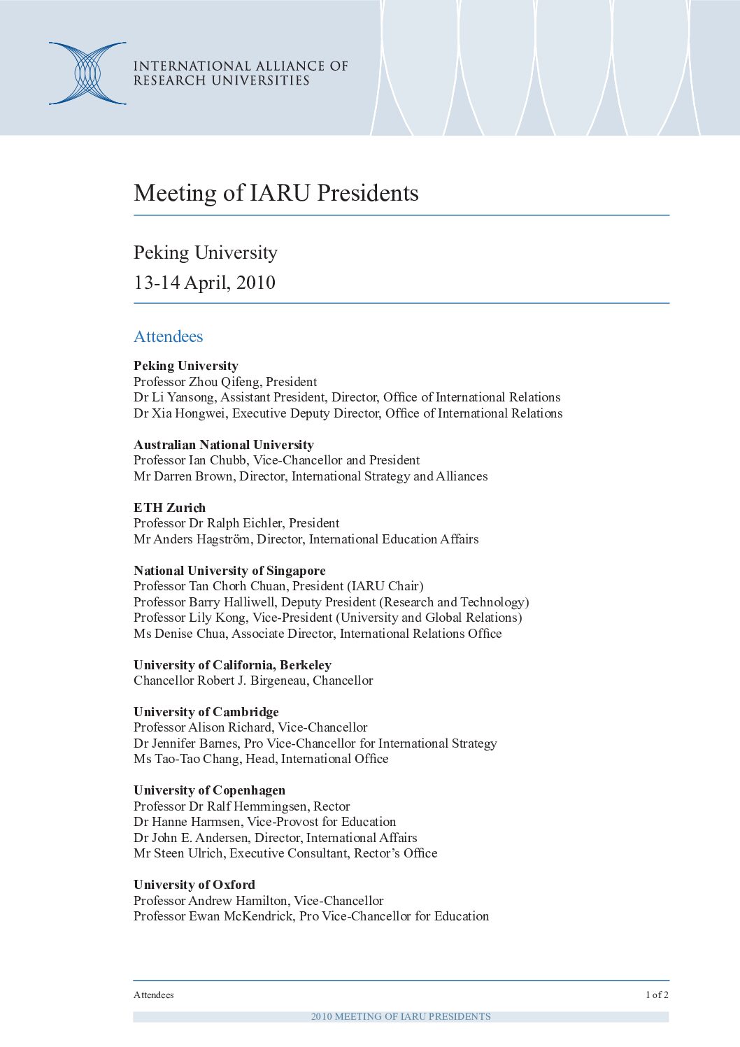 • IARU Member Universities