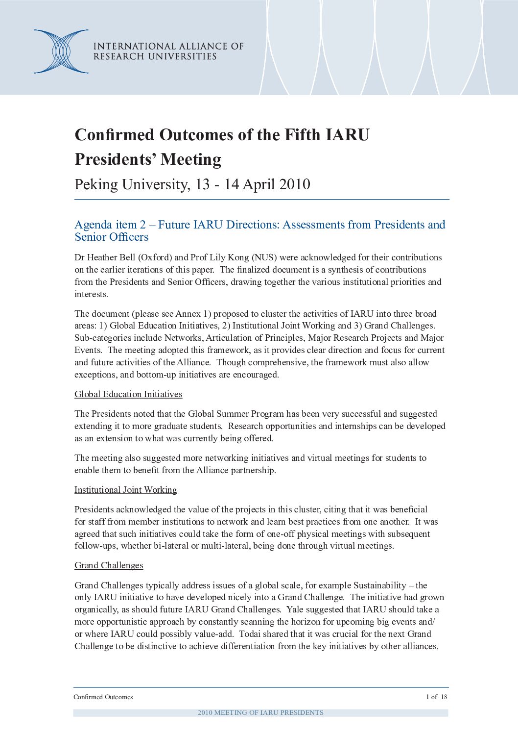 IARU is a network of eleven universities from nine countries, working together to promote academic excellence, drive research innovation, support sustainability, and address global challenges through shared initiatives.