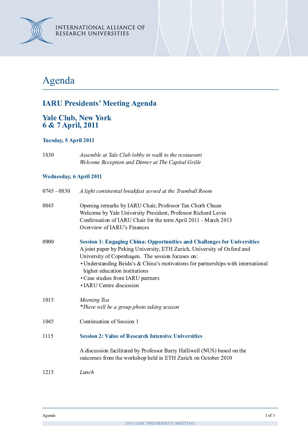 PM 2011: Agenda