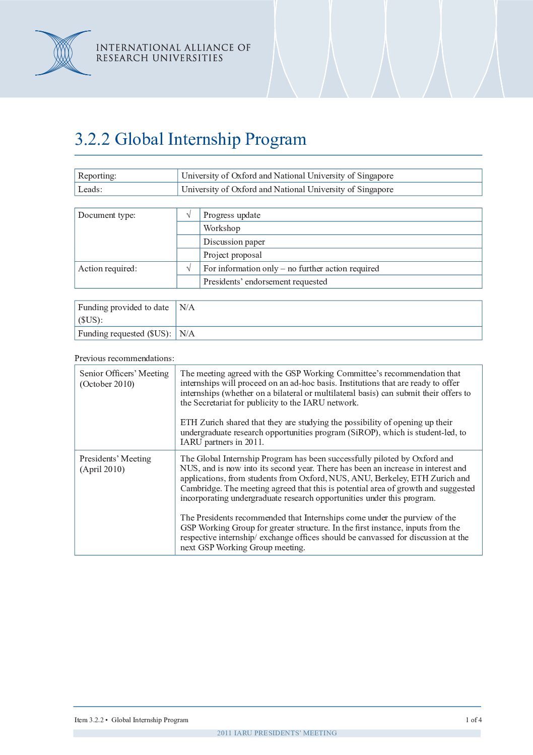 PM 2011: IARU Finance Function Questionnaire