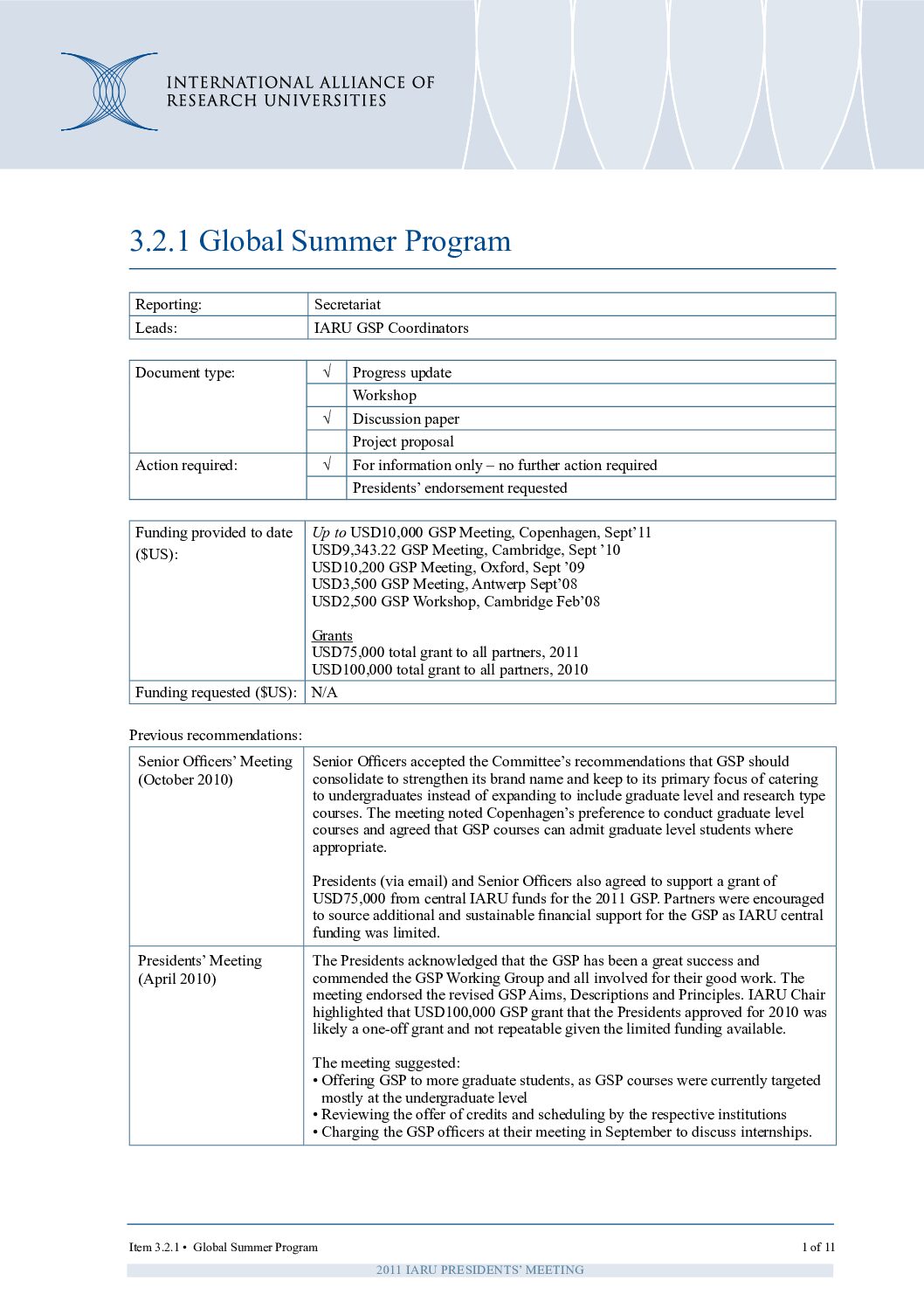 PM 2011: Global Summer Program