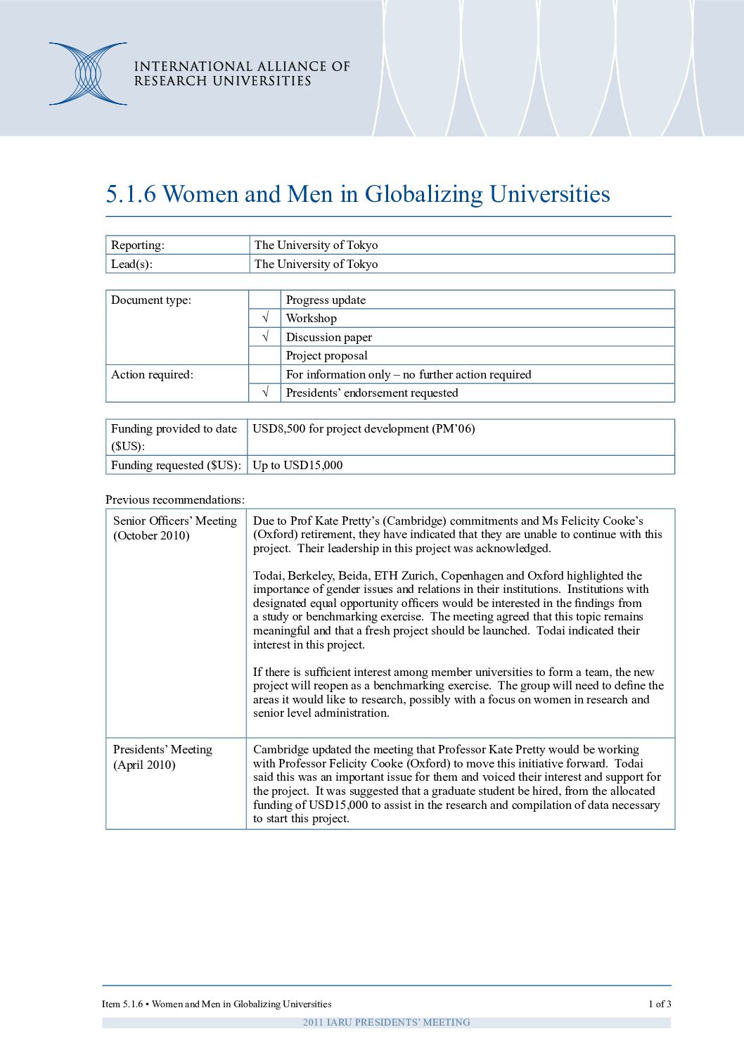 PM 2011: Women & Men in Globalizing Universities