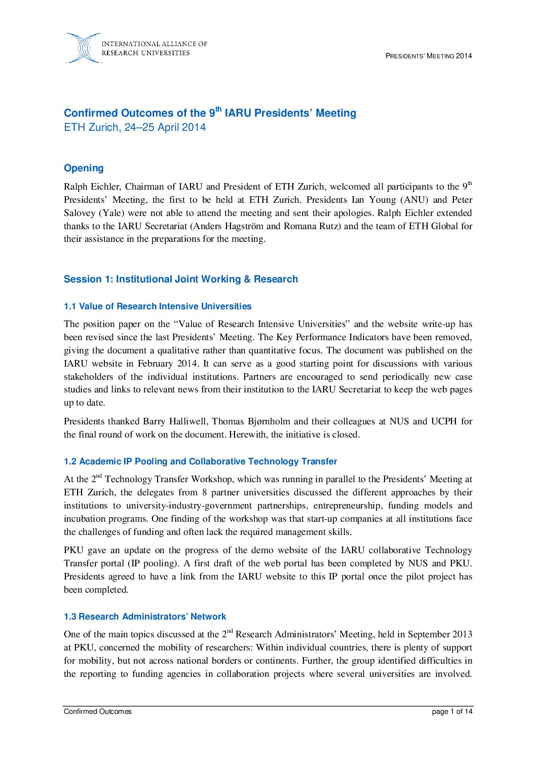 Official documents from the annaul IARU Presidents’ Meeting and IARU Senior Officers’ Meeting