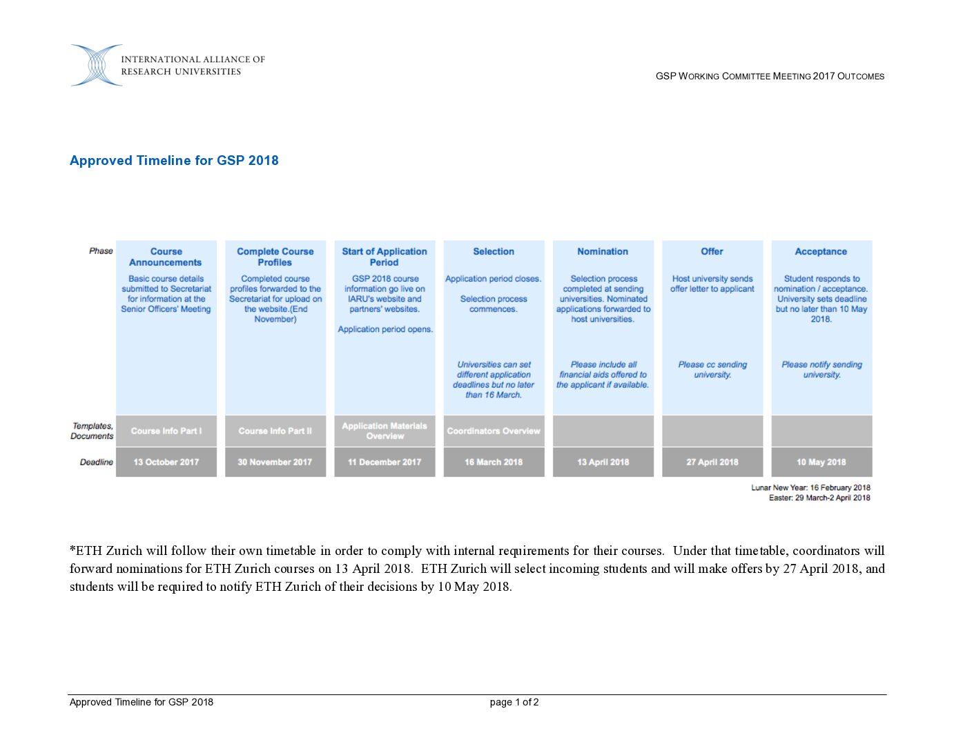 GSP 2017: GSP 2018 Timeline