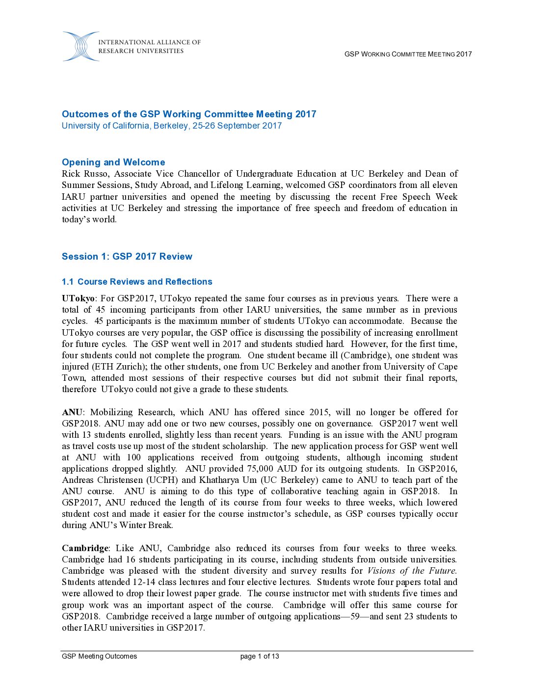 • IARU Member Universities