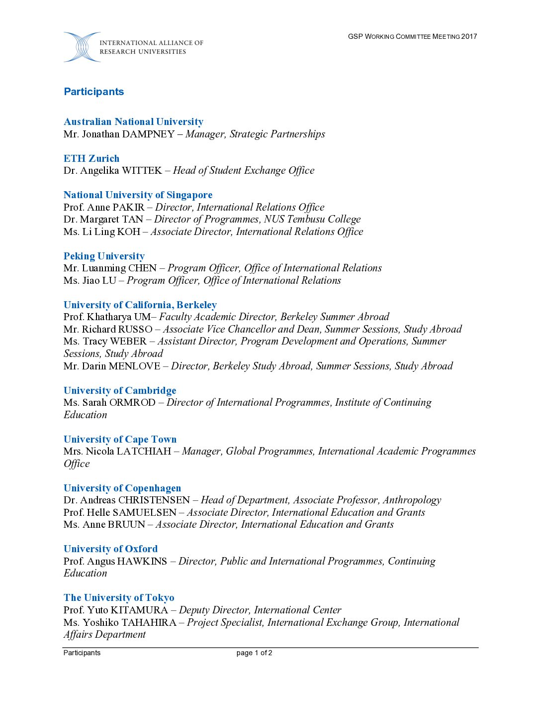 GSP 2017: Participants