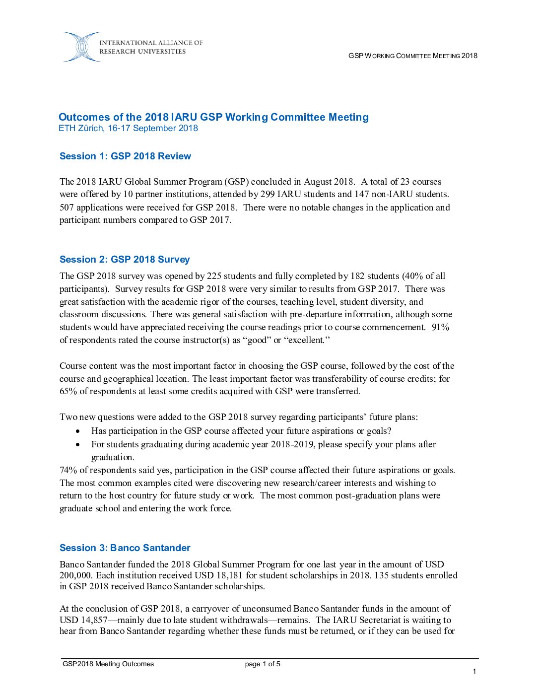 GSP 2018: Outcomes