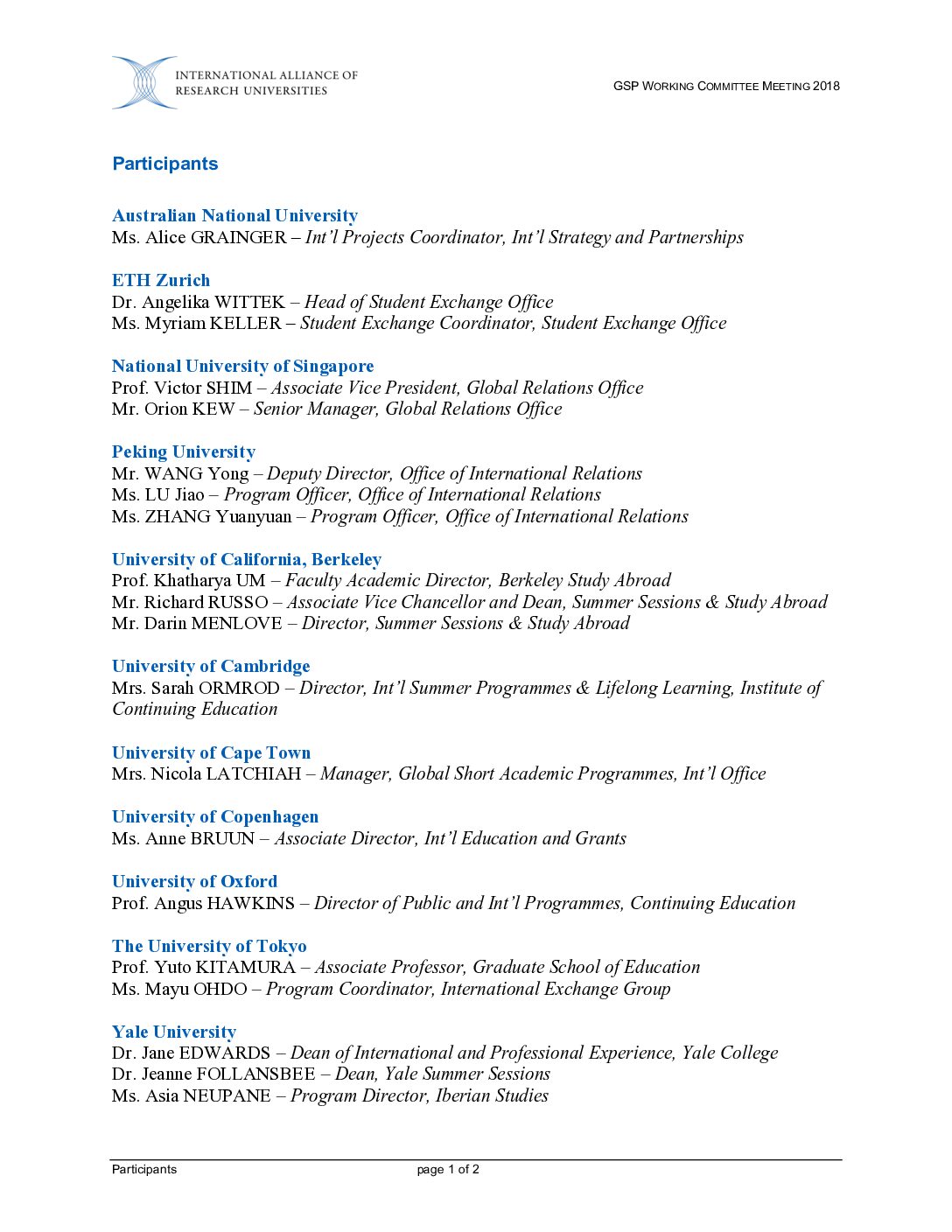 GSP 2018: Participants
