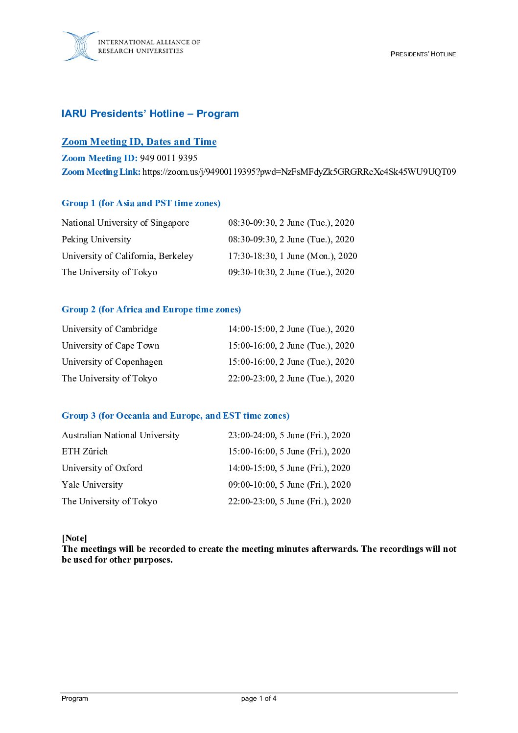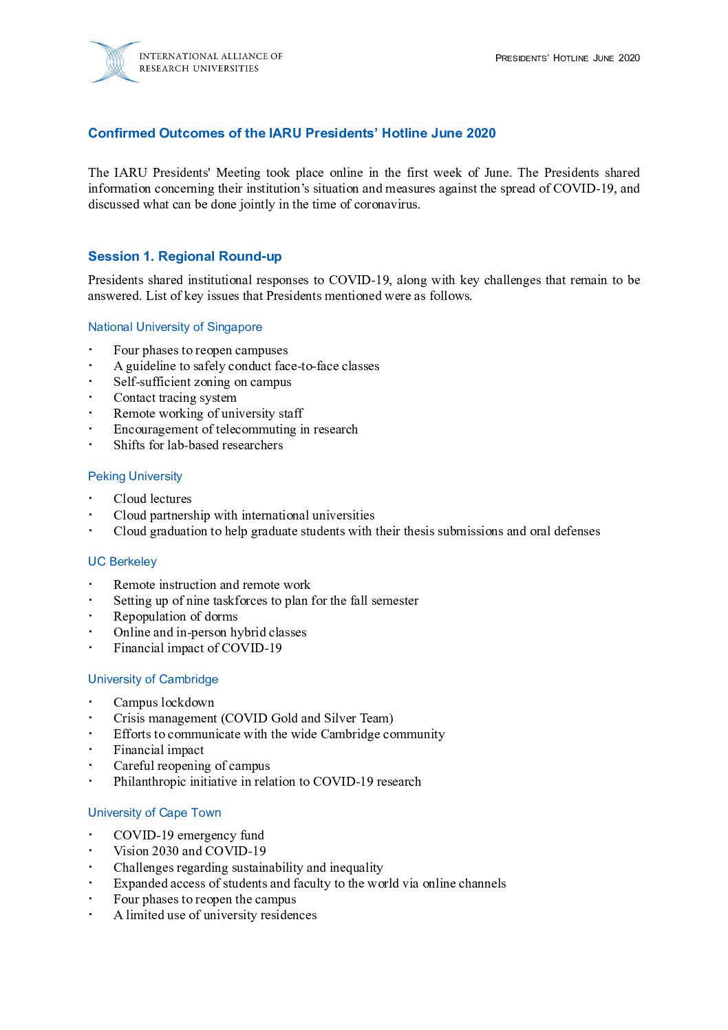 • IARU Member Universities