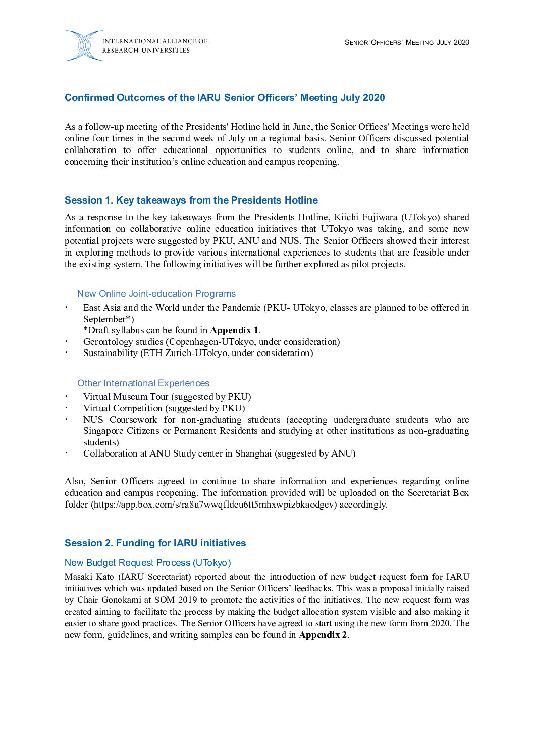 Official documents from the annaul IARU Presidents’ Meeting and IARU Senior Officers’ Meeting