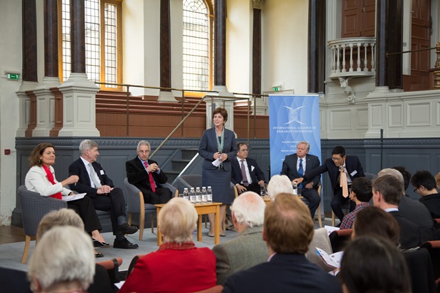 Six Vice-Chancellors and Presidents from Oxford, Beijing, Singapore, Canberra, Cape Town, and Copenhagen addressed a 200-strong audience of alumni and staff from all of their universities. Held to mark the 10th anniversary of the International Alliance of Research Universities (IARU), the event on 24 April also witnessed the admission of the University of Cape Town to IARU – a distinguished group of 11 international research-intensive universities.